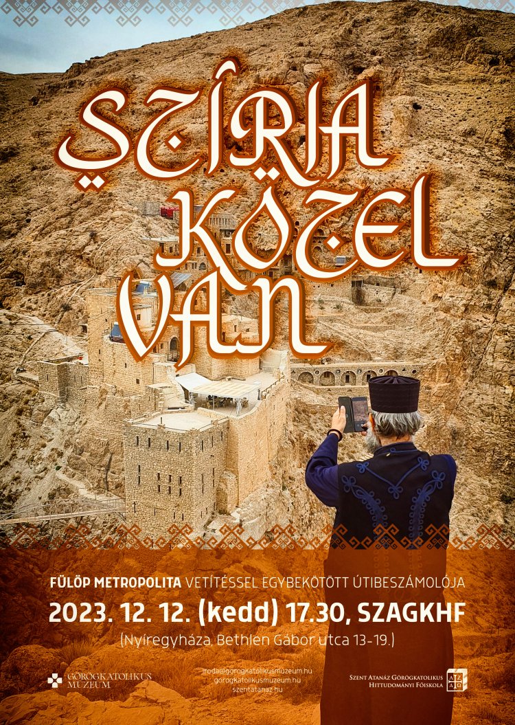 Ha kíváncsi, milyen az élet tőlünk 3000 kilométerre az arab világban, ahol a kereszténység és muszlim világ találkozik, ahol háborúban és gazdasági válságban élik mindennapjaikat az emberek, ahol naponta néhány órára van áram, s ahol a görögkatolikusok épp úgy végzik a szertartásokat, mint Nyíregyházán, jöjjön el december 12-én, kedden a Szent Atanáz Görögkatolikus Híttudományi Főiskola dísztermébe!