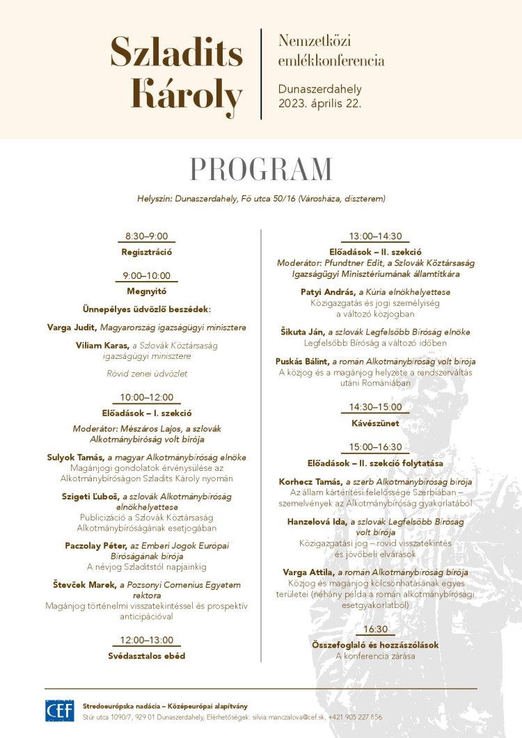 „A közjog és a magánjog a változó időben” nevet viselő egész napos szakmai konferencián neves külföldi és hazai előadók tisztelegtek a 152 évvel ezelőtt Dunaszerdahelyen született, a Magyar Tudományos Akadémia tagjának is megválasztott egyetemi tanár kimagasló életműve előtt. Szladits Károly szakmai munkásságának legjelentősebb eredménye a Magyar magánjog című gyűjteményes munka, amelynek főszerkesztője és egyik társszerzője volt. Hatkötetes monográfiájában a második világháború előtti polgári jogot elemezte.