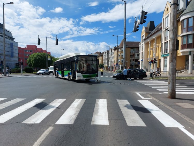 Szombaton a Vay Ádám körúton egy autóbusz és egy személyautó karambolozott.