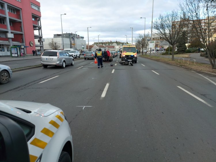Szombaton délelőtt egy robogós és egy személyautó ütközött, majd felborult
