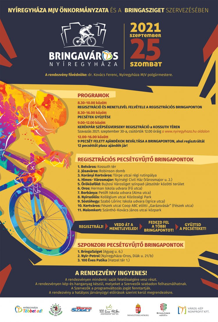 Nyíregyháza MJV Önkormányzata és a Bringasziget szervezésében szeptember 25-én immár 4. alkalommal kerül megrendezésre a 10 településrészt és a belvárost összekötő családi szabadidős sportrendezvény Nyíregyházán, a „Bringaváros”.