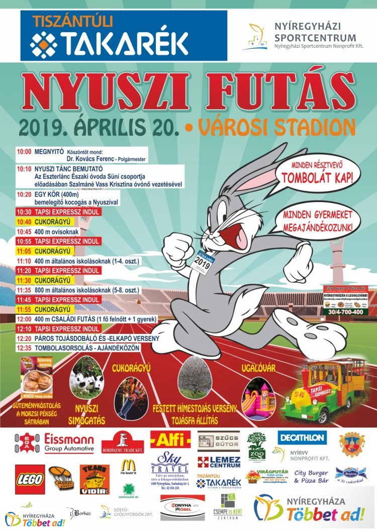 Nyíregyházán 27 éve rendeznek családi sportnapot az ünnepek előtt. A Tiszántúli Takarék Nyuszi Futás idén április április 20-án várja az érdeklődőket a Városi Stadionban.