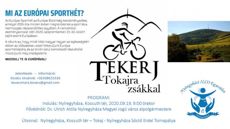A Nyíregyházi ILCO Egyesület kerékpáros túrára várja a sztómásokat és a velük szolidáris városlakókat szeptember 19-én. Az útvonal: Nyíregyháza, Kossuth tér - Tokaj - Nyíregyháza, Erdei tornapálya.