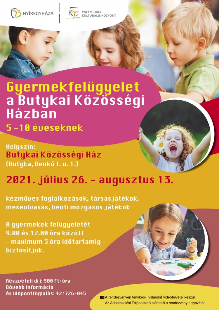 Gyermekfelügyeletet biztosít a Butykai Közösségi Ház 5-10 éveseknek. A gyerekeket július 26-tól augusztus 13-ig, délelőttönként kézműves foglalkozásokkal, társasjátékokkal meseolvasással, benti mozgásos játékokkal várják a szervezők.