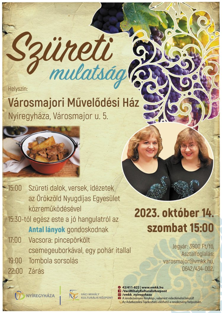 Szüreti mulatság a Városmajori Művelődési Házban!