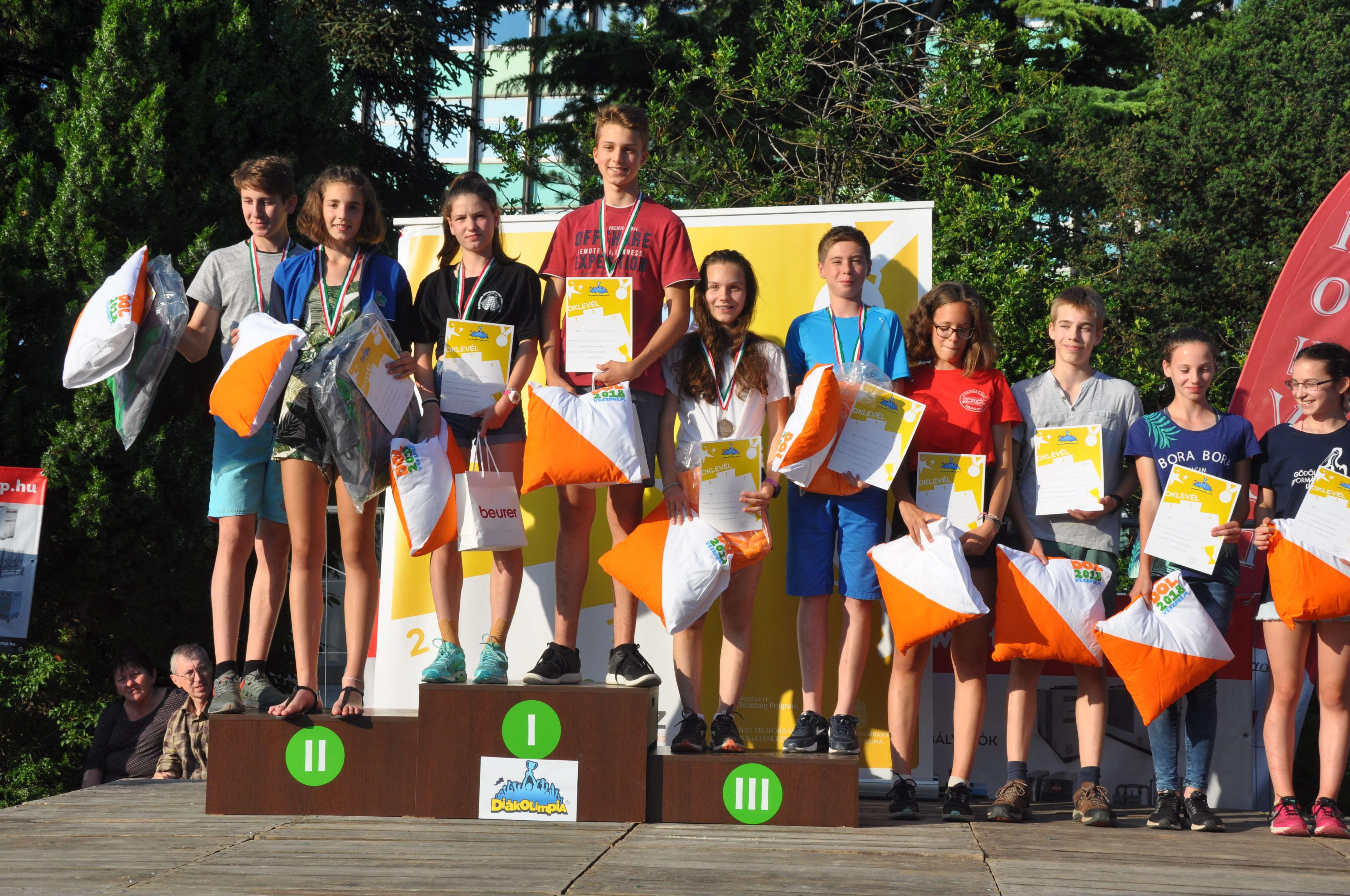Az 1. napon Veszprém belvárosában a rövidtávú versenyt rendezték. A szintes és technikás pályákon a legjobb eredményt Sztojka Milán Szabolcs, a Krúdy Gimnázium tanulója ért el, a tavalyi rövidtávú bajnok és a hazaiak erőssége mögött a 3. helyet szerezte meg. Nem lehetett panasz a többiekre sem, a többség a népes mezőny első felében végzett.