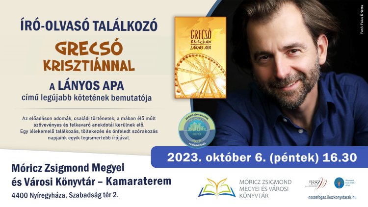 Október 6-án Grecsó Krisztián, Lányos apa című kötetét mutatja be a nyíregyházi közönségnek.