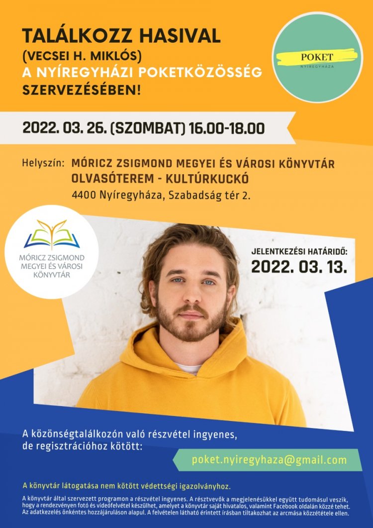 Találkozz Hasival (Vecsei H. Miklós) a Nyíregyházi Poketközösség szervezésében!