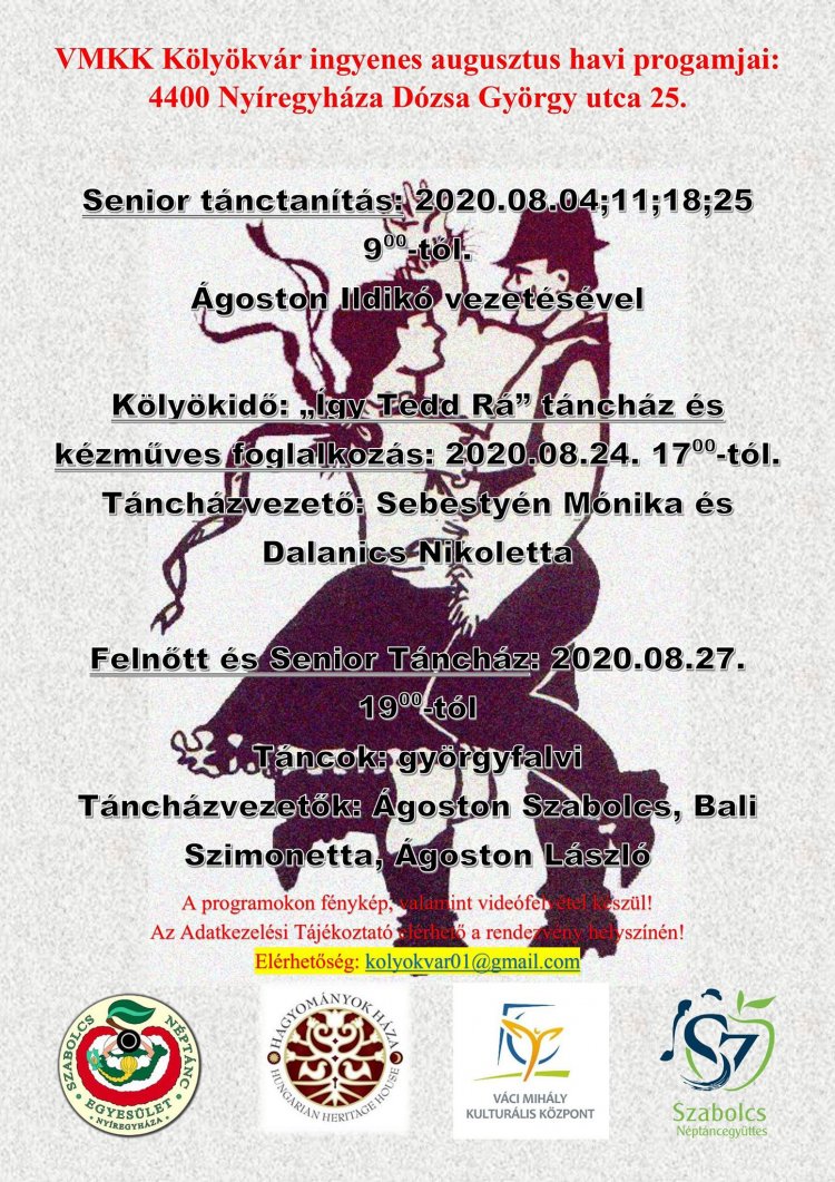 A VMKK Kölyökvár augusztusban ingyenes programokat kínál gyerekeknek és felnőtteknek egyaránt. A senior tánctanítás mellett különböző korosztályokat megmozgató táncházak várják az érdeklődőket.