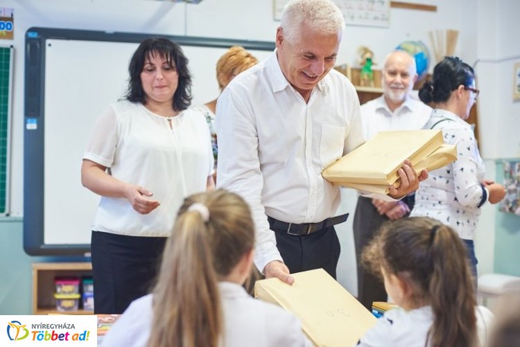 Nettó 1500 forint értékű tanszercsomagot kaptak az első tanítási napon a nyíregyházi alsó tagozatos általános iskolások. A polgármester és a városrész önkormányzati képviselője személyesen adta át a Móricz Zsigmond Általános Iskola Vécsey Károly tagintézménye 3. a osztályában.