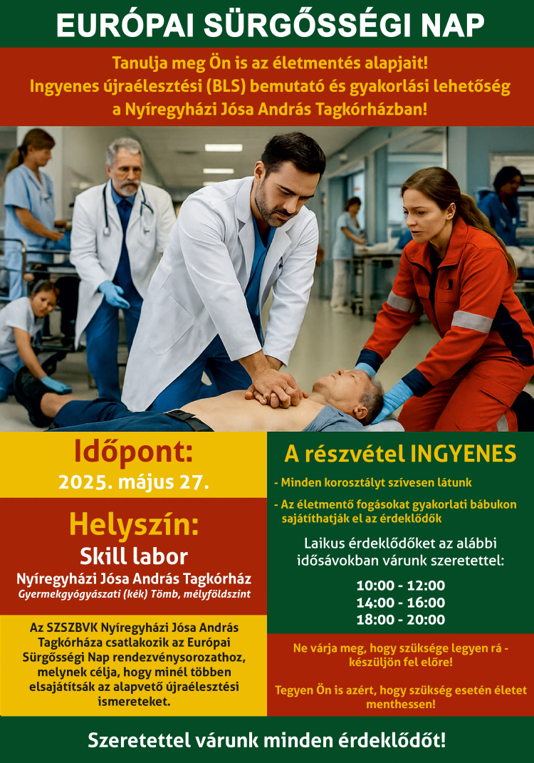 Az Európai Sürgősségi Nap alkalmából egy rendkívül izgalmas és érdekes programra hívja az érdeklődőket a SZSZBVK Nyíregyházi Jósa András Tagkórháza.