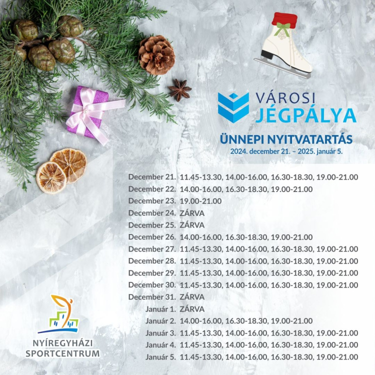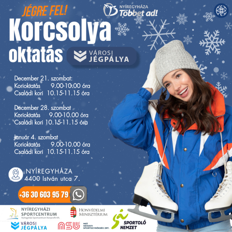 A Városi Jégpálya a téli szünetben is várja a korcsolyázni vágyókat és azoknak is lesz lehetőségük, akik meg szeretnének tanulni korizni.