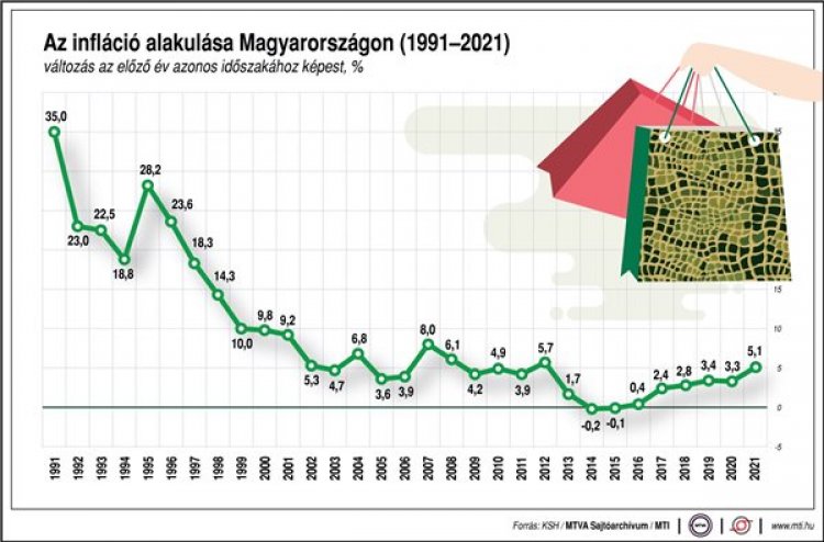 Tavaly 5,1 százalékkal nőttek a fogyasztói árak