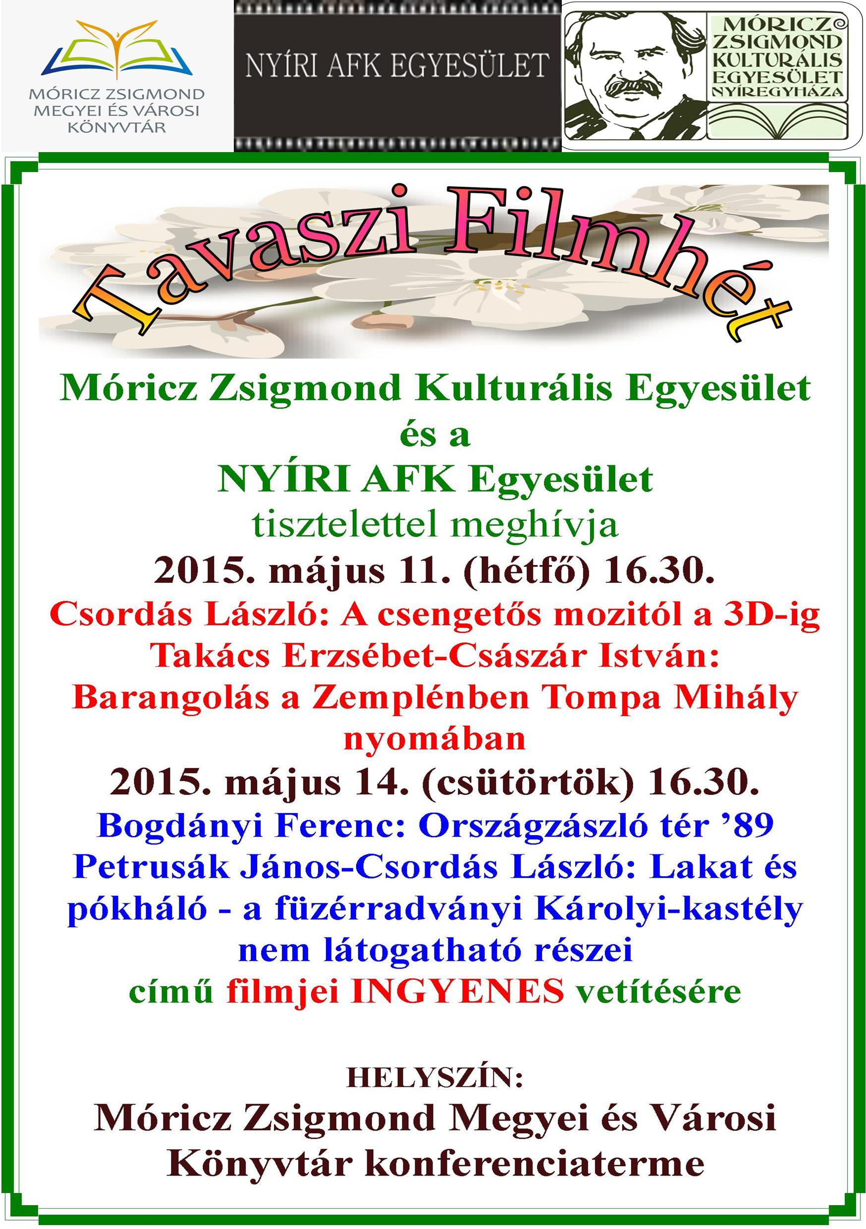 A NYÍRI AFK Egyesület filmjeiből tartanak ingyenes vetítéseket május 11-én és 14-én a Móricz Zsigmond könyvtárban.