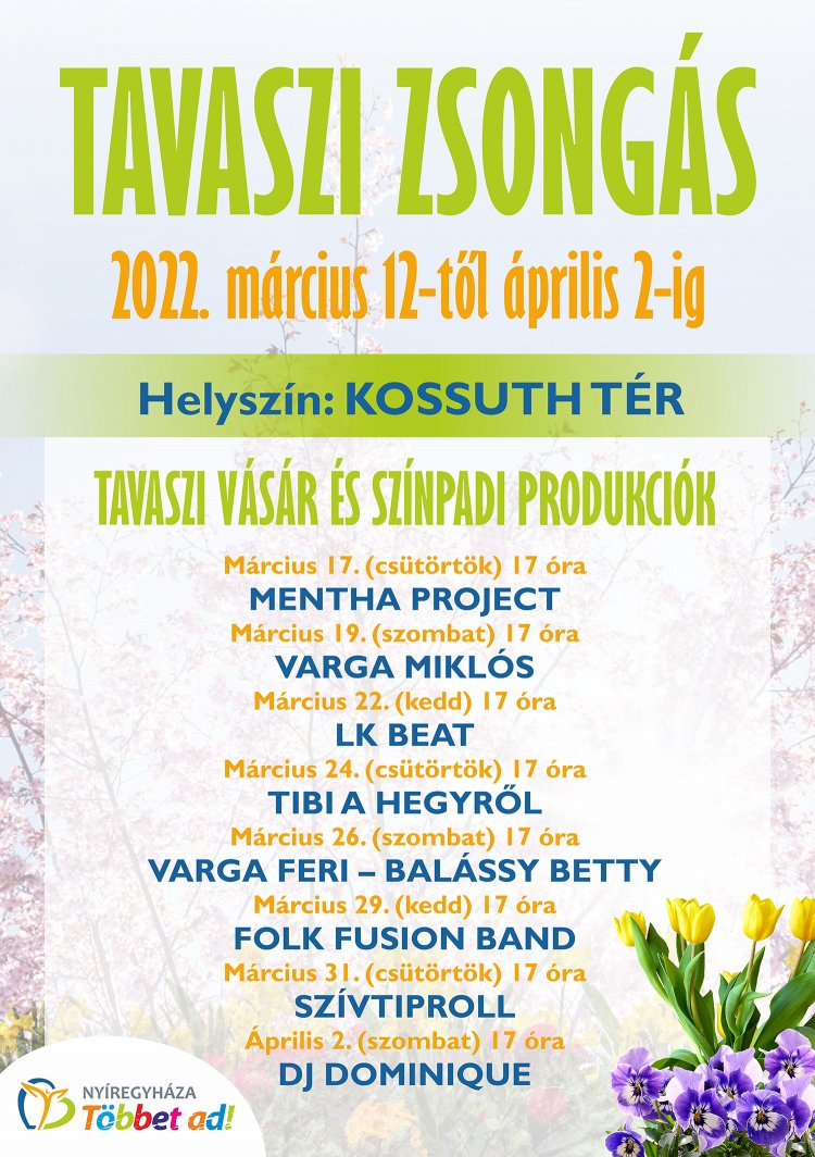 A Tavaszi Zsongás rendezvény keretében megannyi fellépő biztosítja a kiváló hangulatot: