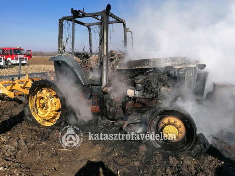 Teljes terjedelmében égett egy traktor Nyíregyháza külterületén, csütörtök délelőtt