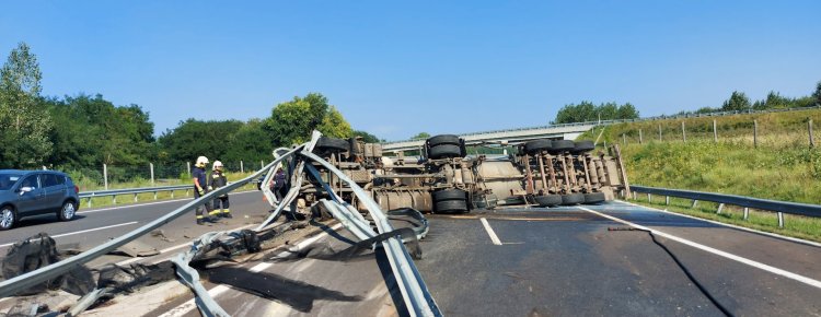 Letarolta a szalagkorlátot, majd felborult egy nyerges vontató az M3-as autópályán, a Mohos pihenő közelében, a Vásárosnamény felé vezető szakaszon.