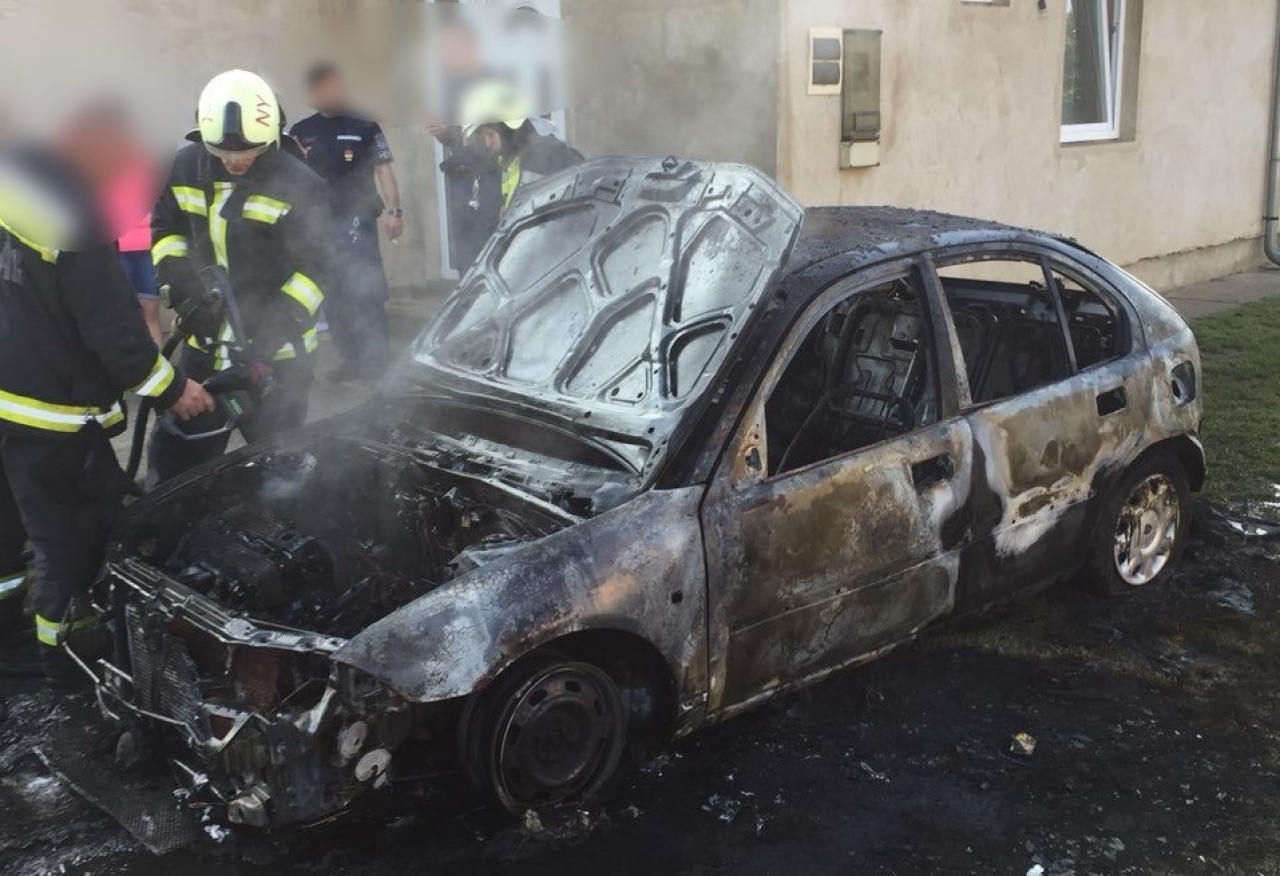 Teljesen kiégett – Lakóház udvarán gyulladt ki egy személygépkocsi Kemecsén