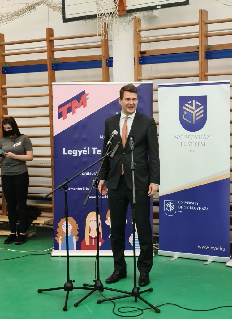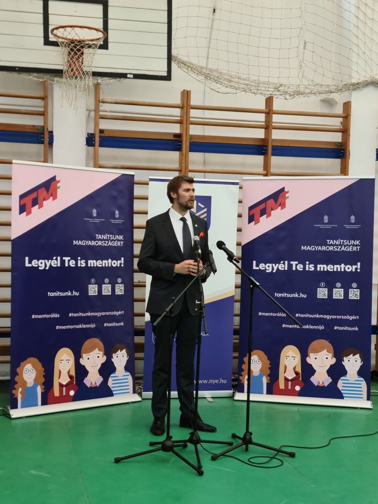 Az ünnepélyes átadón Vasmegyer polgármestere és az iskola tanárai mellett rövid köszöntőt mondott György László, az Innovációs és Technológiai Minisztérium államtitkára, aki a Tanítsunk Magyarországért Program egyik megálmodója és támogatója. Beszédében saját élményeit felidézve elmondta, hogyan tanította meg a sport a sikerekre, a csapatmunkára, és a nehézségek elviselésére.