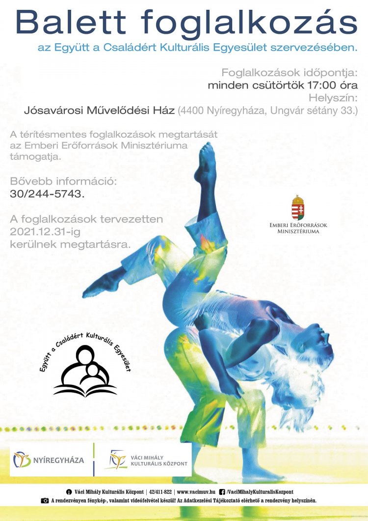 Az Együtt a Családért Kulturális Egyesület szervezésében térítésmentes balett foglalkozásokra várják az érdeklődőket a Jósavárosi Művelődési Házban.