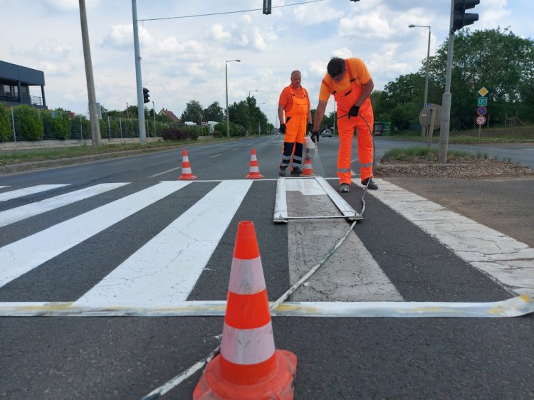 Útburkolati jelek festése kezdődött el az Orosi úton hétfőn, ami kedden is folytatódik.