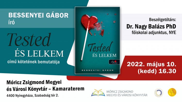 Tested és lelkem című kötetét mutatja be Bessenyei Gábor író május 10-én Nyíregyházán, a Móricz Zsigmond könyvtárban. A szerzővel Nagy Balázs beszélget.