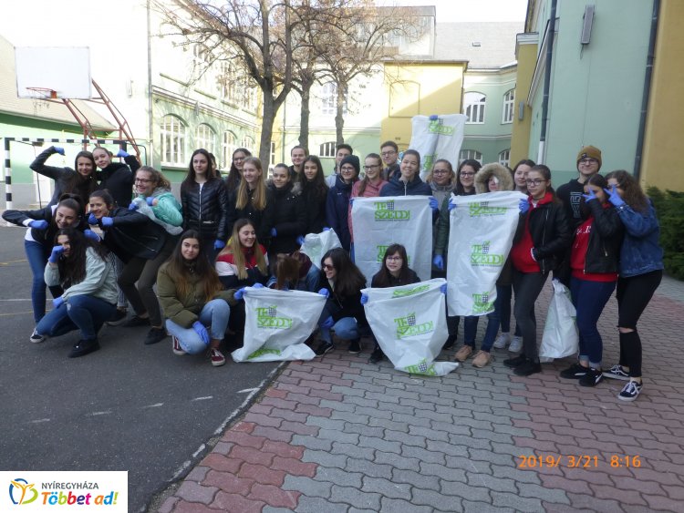 Ennek szellemében nem volt kétséges számomra, hogy én is benevezek a TeSzedd! programba, és vidáman indultunk el kísérőtanárainkkal és osztálytársaimmal, hogy megtisztítsuk gimnáziumunk környékét és a Széchenyi utca Vasgyár utcáig terjedő részét.