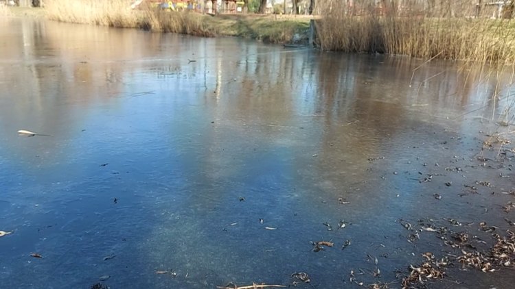 Több repedést is látni a jégen, így életveszélyes lehet rámenni, de alapból is tilos lenne rálépni, ha elég vastag volna a jégréteg.