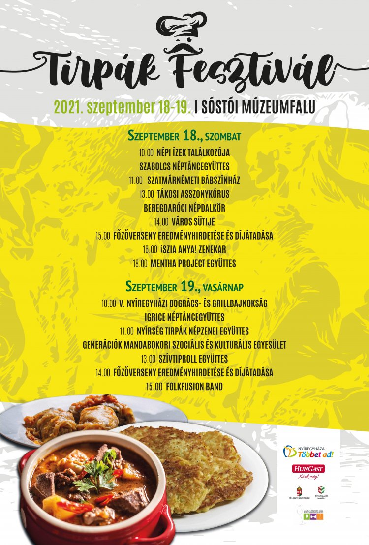 Hagyományos tirpák ételekkel, főzőversennyel, a színpadon érdekes programokkal várja a városlakókat és a turistákat szeptember 18-19-én a Tirpák Fesztivál. A hagyományos gasztronómiai program helyszíne a Sóstói Múzeumfalu lesz.