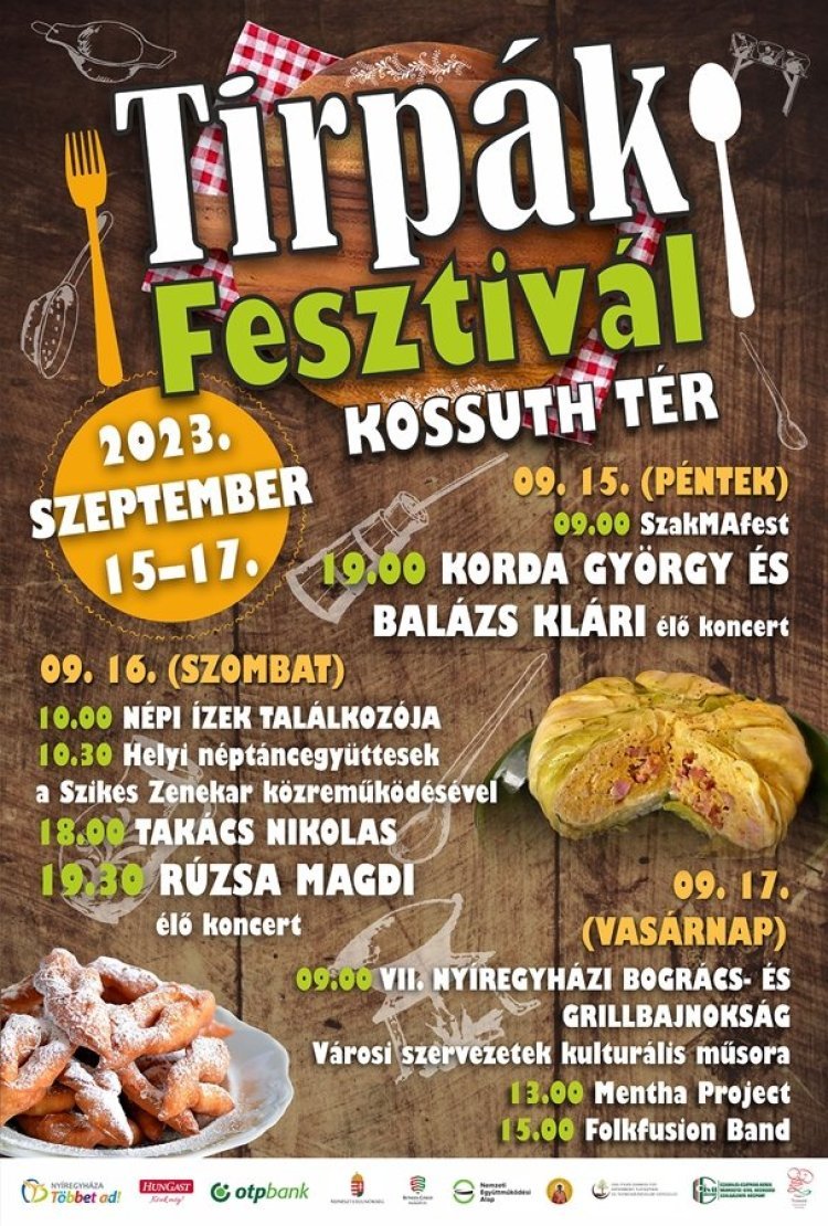 A tirpák gasztronómia és kultúra kerül a középpontba szeptember 15-e és 17-e között, amikor ismét megrendezik a Tirpák Fesztivált a Kossuth téren. A fesztivált három rendezvény színesíti, finom ételek, kézműves termékek, zenei fellépők és sok újdonság várja az érdeklődőket. Cikkünk folyamatosan frissül.