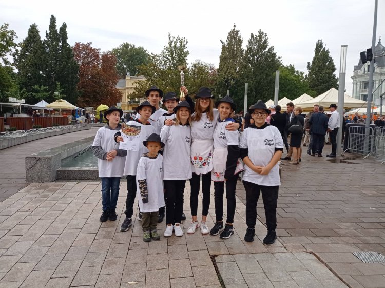 – A csapat legfiatalabb tagja 5, a legidősebb pedig 13 éves volt. Az elmúlt évek alatt annyira bebolondítottam őket, hogy idén már ők akartak indulni. Bár ott voltam – a többi szülővel együtt – a háttérben, mindent ők csináltak. Persze, előtte legyakoroltuk a teljes menüt, a versenyre pedig leosztottuk, hogy kinek mi lesz a feladata. Még a lekvárt is a Kossuth téren főzték a gyerekek, de itt nyújtották és sütötték a krumplilángost is. Készült füstölt csülkös, brindzás haluska, pergelt káposztás tirpák paszulyleves hántolt árpával, krumplilángos sparhelton lilahagymás-kapros tejföllel vagy szilvalekvárral, valamint tiszai amúr paprikás lisztben sütve. Amellett, hogy elhozták az első díjat, fontos volt a kilátogatók visszajelzése is. Az pedig egyértelműen látszott, hogy dupla ekkora adag is kevés lett volna, annyira ízlett mindenkinek – mondta el megkeresésünkre Kósa Krisztián, aki 2004 óta főz hivatalosan, 10 éve pedig letette a mesterszakács vizsgát.