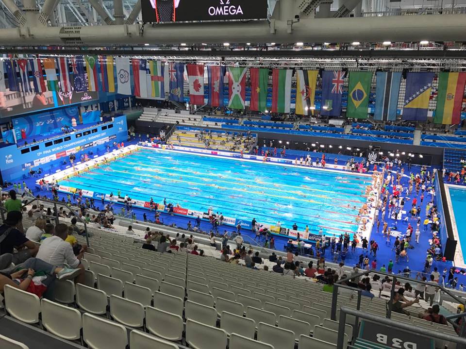 A jól megérdemelt munka után a kis csapat a FINA Világbajnokságon szurkolt a Duna Arénában.