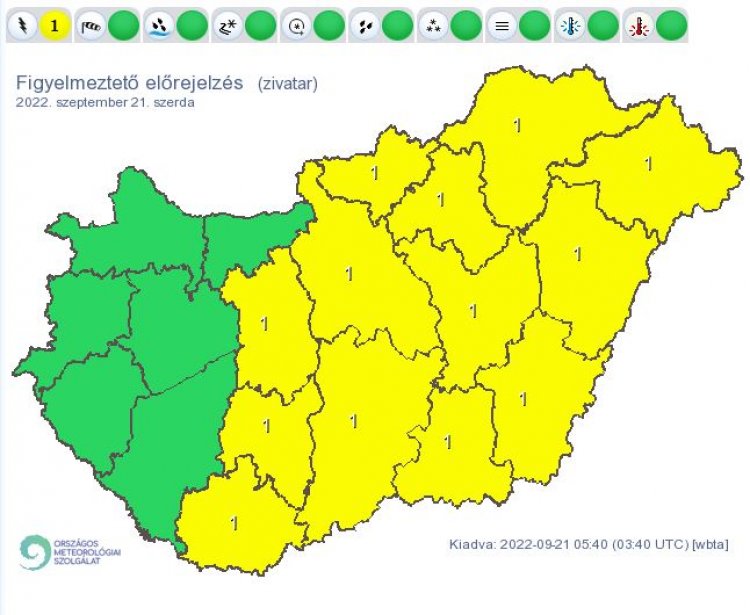 Késő délutánra fátyolfelhőzet sodródik be északkelet felől. A Dunától keletre elszórtan lehetnek záporok, néhol zivatarok, máshol elvétve lehet csapadék. Az északnyugati, északi szél élénk, a Nyugat-Dunántúlon erős lesz, emellett zivatarok környezetében is előfordulhatnak erős lökések.