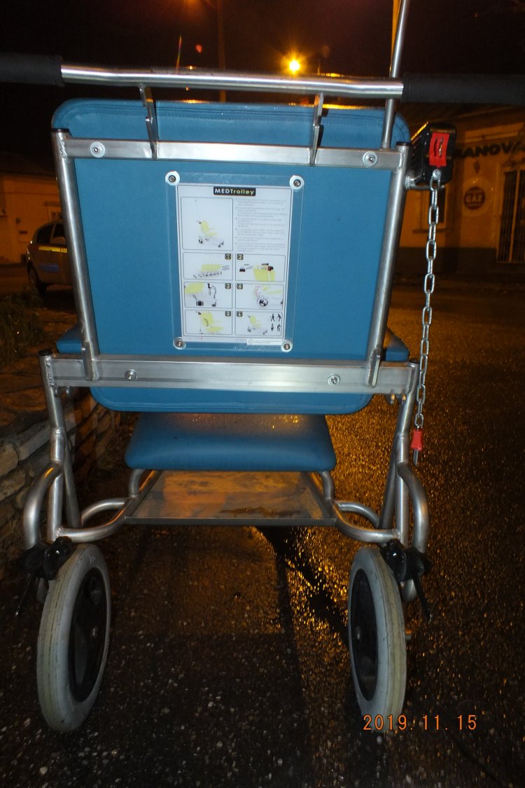 A hosszú út azonban nem tett jót a tolókocsinak, abban 45.000,-Ft kár keletkezett, mivel a kereke megrongálódott.