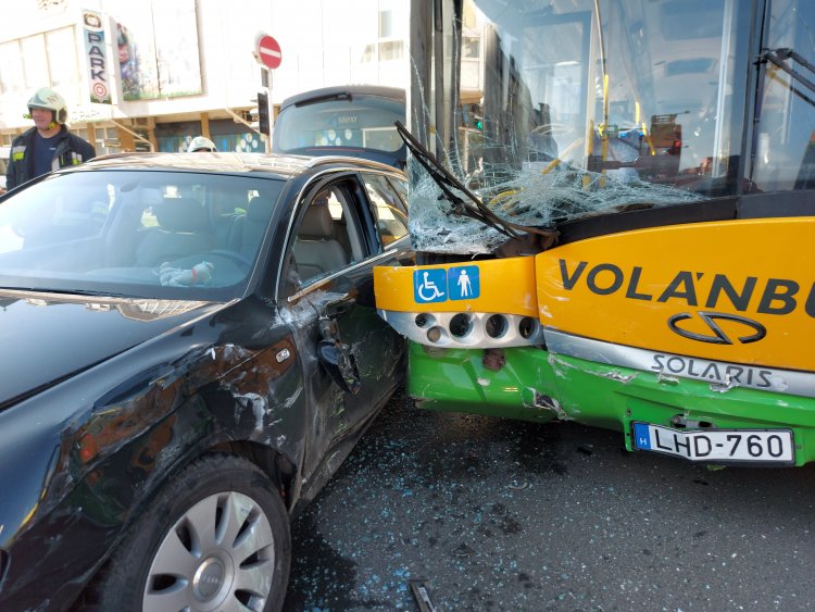 Szombaton délelőtt baleset történt a Rákóczi - Vasvári Pál - Víz utcai csomópontban. Egy autóbusz és egy személygépjármű ütközött nagy erővel össze.