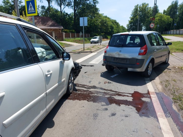 A rendőrök szeme láttára ütközött össze két autó vasárnap a 38-as főúton, Nyírtelek belterületén.
