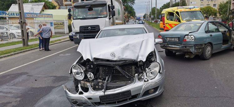 A Kert utcán baleset történt. Egy autó vezetője vissza akart fordulni, ám hátulról egy érkező jármű nekiment. A vétlen autóban utazókat a mentők kórházba szállították, a másik gépjármű pedig totálkáros lett.