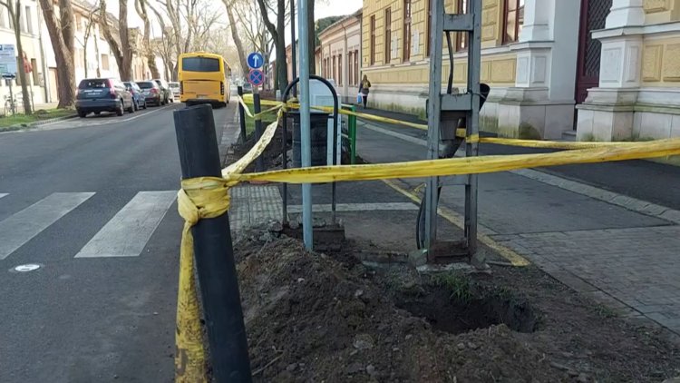 Továbbra is dolgoznak a Kossuth gimnázium előtt, útszűkületre kell számítani a Szent István utcán, valamint a gyalogosok is még nagyobb körültekintéssel közelítsék meg a zebrát.