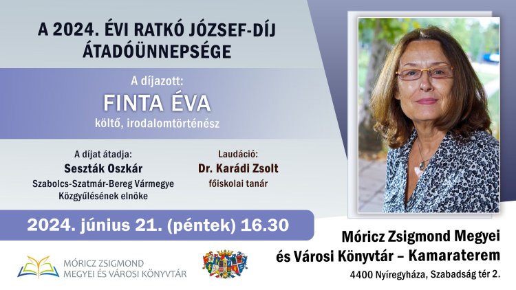 2024-ben Finta Éva költő, iradalomtörténész veheti át a Rarkó József-díjat.