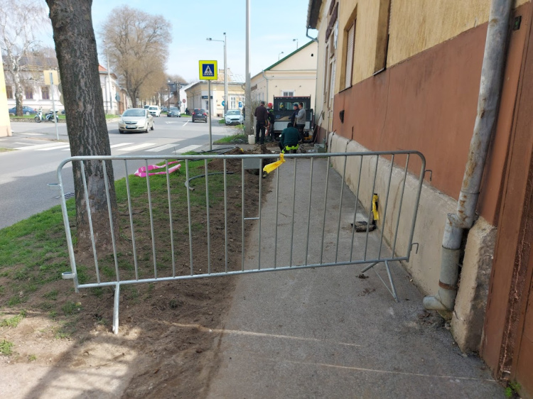 Optikai kábelt fektetnek a Kereszt és a Virág utcán.