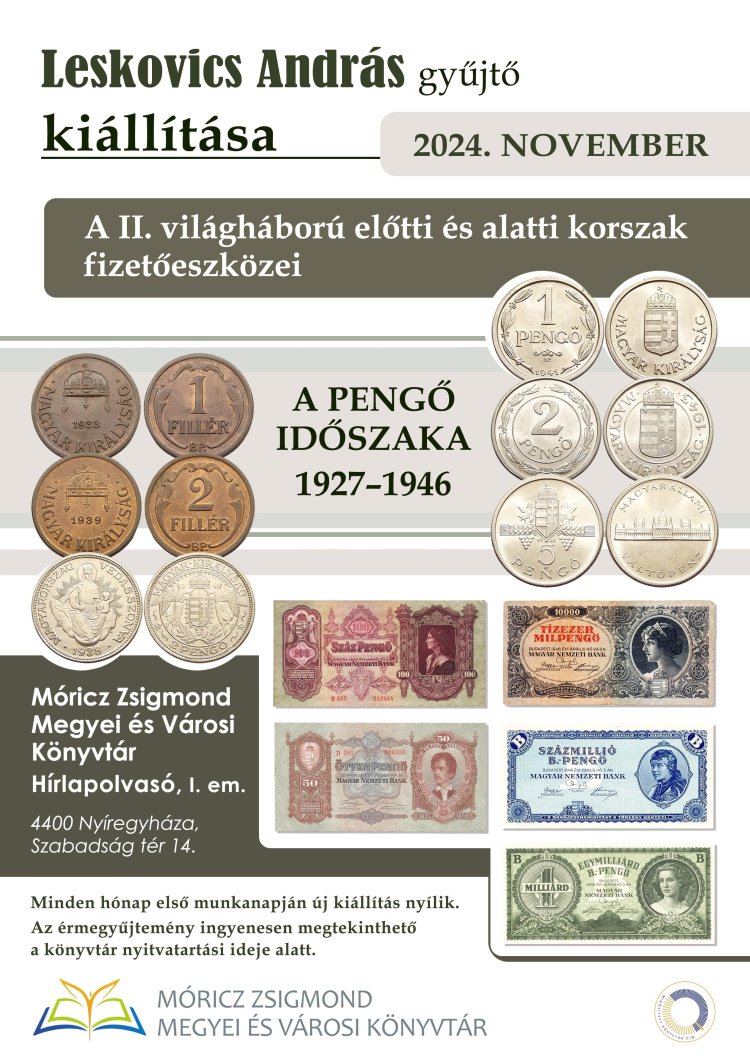 Leskovics András gyűjtő fizetőeszköz kiállítása – A II. világháború előtti és alatti időszak fizetőeszközei (A Pengő időszaka 1927-1946)