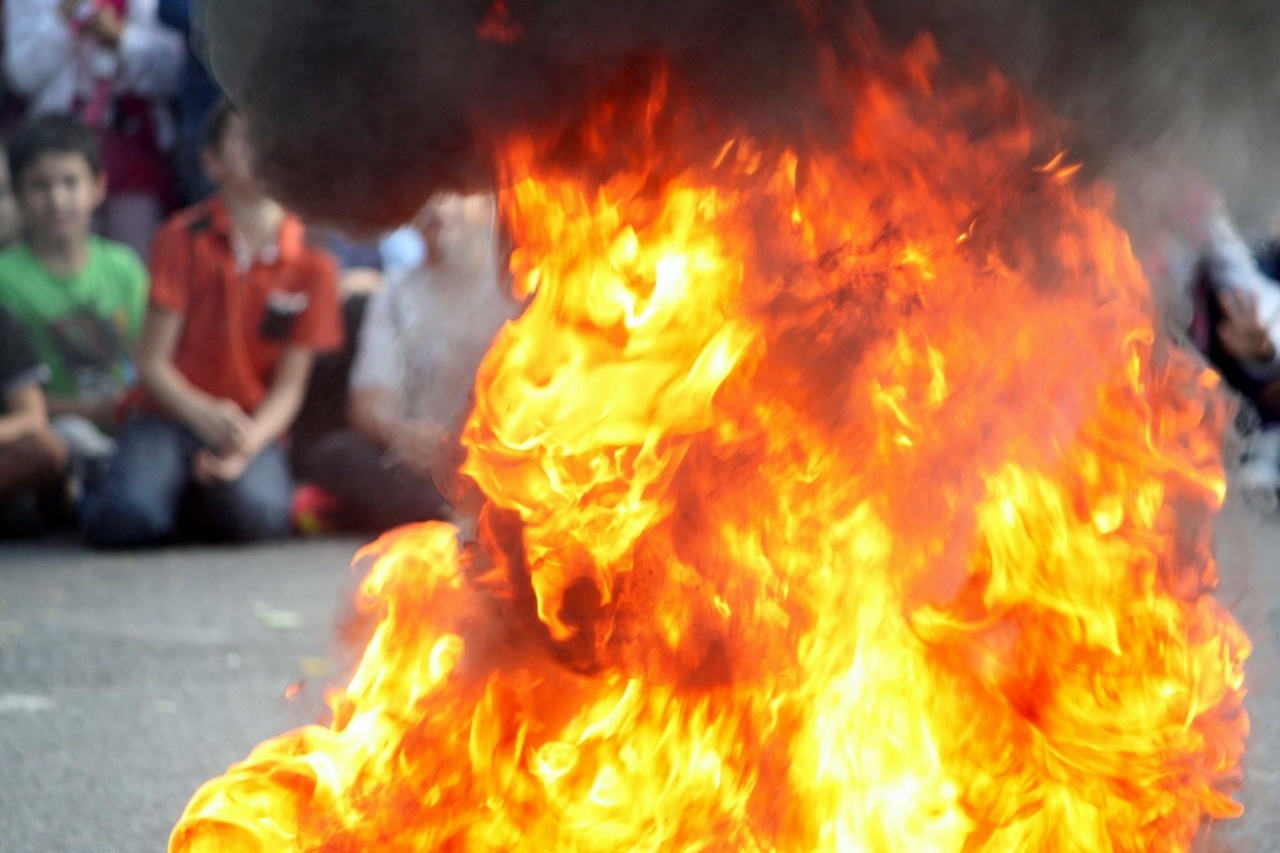 A gyerekek kipróbálhatták teljes légzésvédelemben a füstsátort, ahol a sűrű füstben egy tárgyat kellett megkeresniük, majd a tálca tűz oltása következett, ahol az éghető folyadék oltását mutatták be a tűzoltók, amit felügyelettel ki is próbálhattak a diákok.