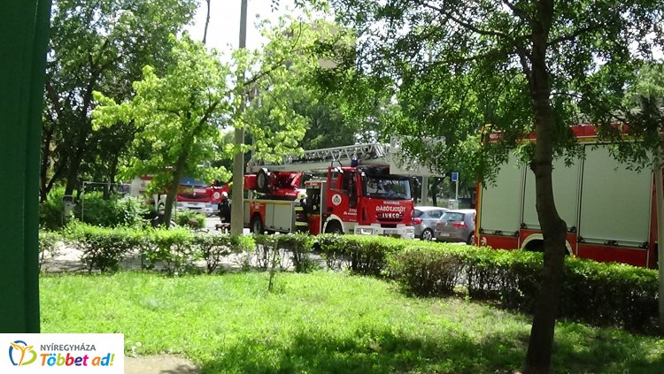 Tűzoltási gyakorlatot tartottak a nyíregyházi tűzoltók a Kossuth utcai 14 emeletesnél
