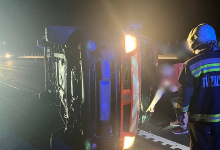 Felborult egy Budapest irányába haladó kisteherautó az M3-as autópálya, 219-es kilométerszelvényének közelében.