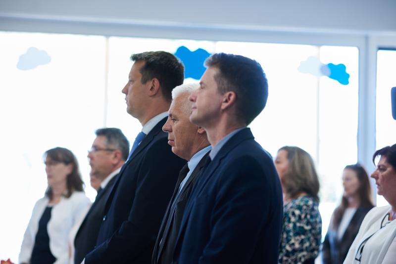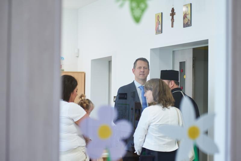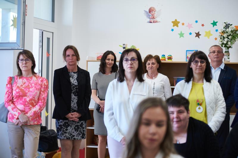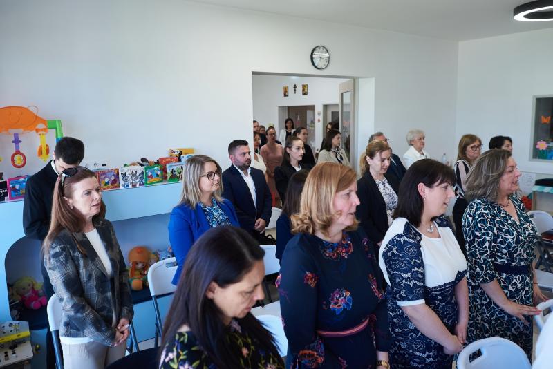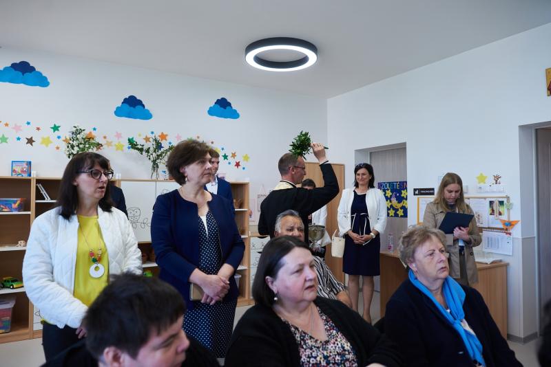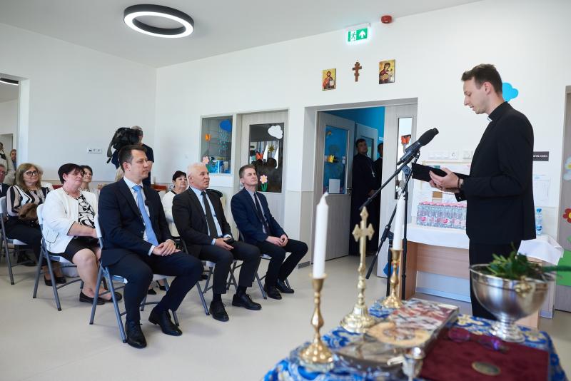 A bölcsőde nemrégiben nyitotta meg kapuit a családok előtt, szerdán pedig ünnepélyes keretek között is átadták a beruházást. Az ima után egy különleges részéhez ért a szertartás, szentelt olajjal kenték meg az intézmény területén található kereszteket, illetve megszentelték az új bölcsődét Szocska Ábel megyés püspök és Szabó Tamás pasztorális helynök vezetésével.