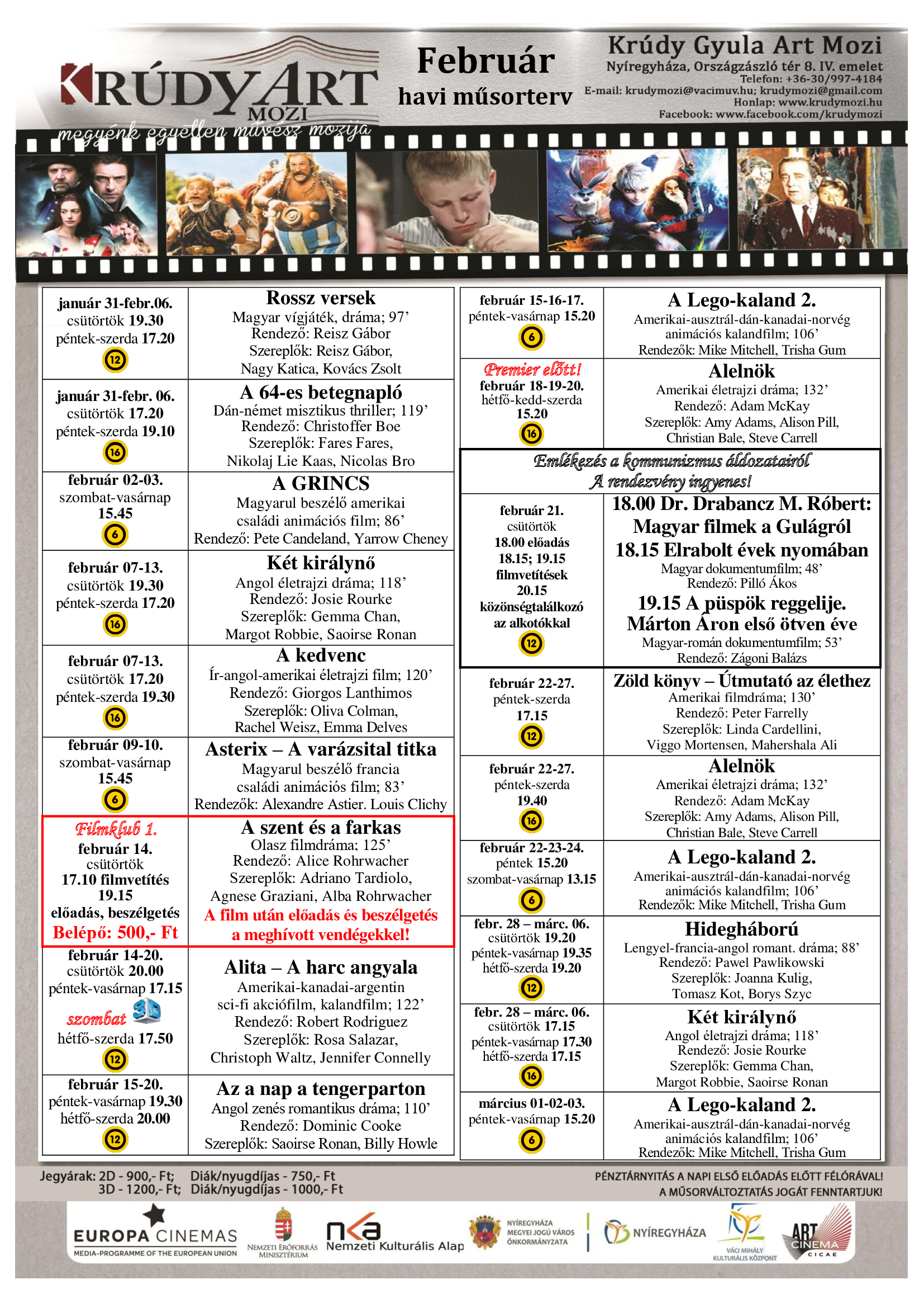 Így alakul a továbbiakban a Krúdy Art Mozi februári műsora: