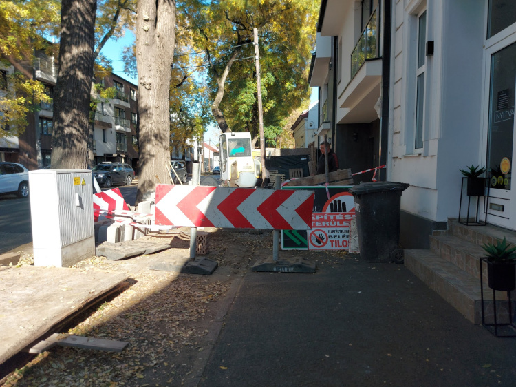 A korábbi építkezés helyén most vadonatúj, díszkőburkolatból készült járdát alakítanak ki, ezért a gyalogosok türelmét kérik a munkálatok idejére.