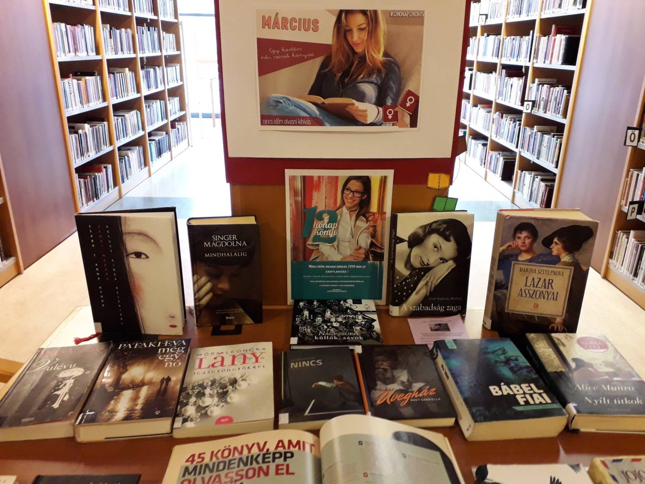 Havi egy könyv nem sok! 12 hónap - 12 könyv. Csatlakozzatok az országos kihíváshoz, s minden hónapban segítünk megtalálni a hónap könyvét. Márciusban egy kortárs női szerző művét. Lehet választani! A választék ajánlóasztalunkon napról napra változik.