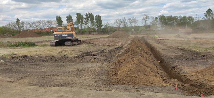 A munkaterületet május 5-én vette át a kivitelező, azóta megtörtént a meglévő beton burkolat bontása, valamint gallyazási munkákat is végeztek a 2,5 ha terület humuszleszedése mellett. Továbbá megkezdték a közműépítési munkákat (ivóvíz-, szennyvíz-, és csapadékvíz), és a kapcsolódó 1500 m3-es földmedrű szikkasztó tározó kialakítását is.