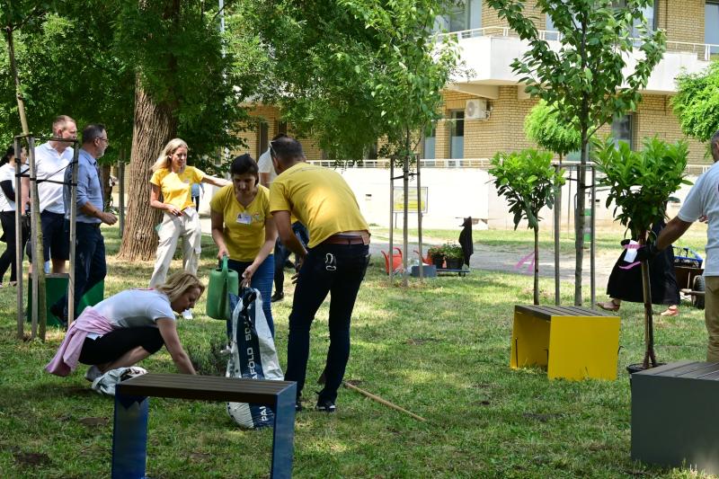 A projekt első lépéseként közel 70 kő virágládát ültettek be tartós, időjárásálló növényekkel. Emellett új padokat és ülőboxokat is kihelyeztek a főbejárat és a szülészeti épület közötti fás területen, ahol ezentúl a betegek, látogatók és dolgozók is kényelmesen megpihenhetnek. A fejlesztési igazgató kiemelte, nagyra értékelik a gyógyszercég támogatását, és fontosnak tartják, hogy ne csak az épületek, hanem a kórház környezete is fejlődjön.
